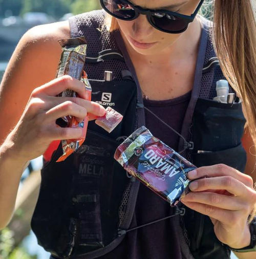 Chaque paquet de gommes apporte 60 mg de potassium et jusqu’à 100 mg de sodium. Si votre effort dépasse 90 minutes, ou si vous vous entraînez dans la chaleur ou l’humidité, complétez-les avec une boisson riche en électrolytes pour un apport optimal.