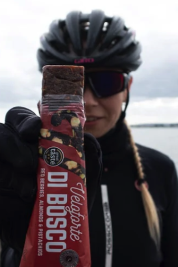 Idéale pour égayer même les efforts les plus longs, Di Bosco est une barre énergétique somptueuse, remplie de baies rouges fondantes, de pistaches croquantes, d'amandes et de zestes de citron frais.